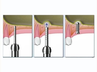 インプラントを埋め込む部分の骨が薄い方は、上顎洞の位置(小鼻くらいの高さ)にあたる歯茎を切り開き、そこから骨を削って人工の骨を補てんし強化する方法です。